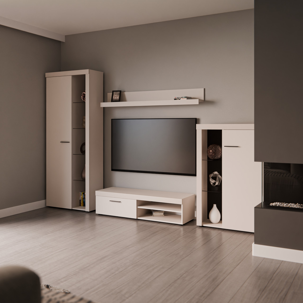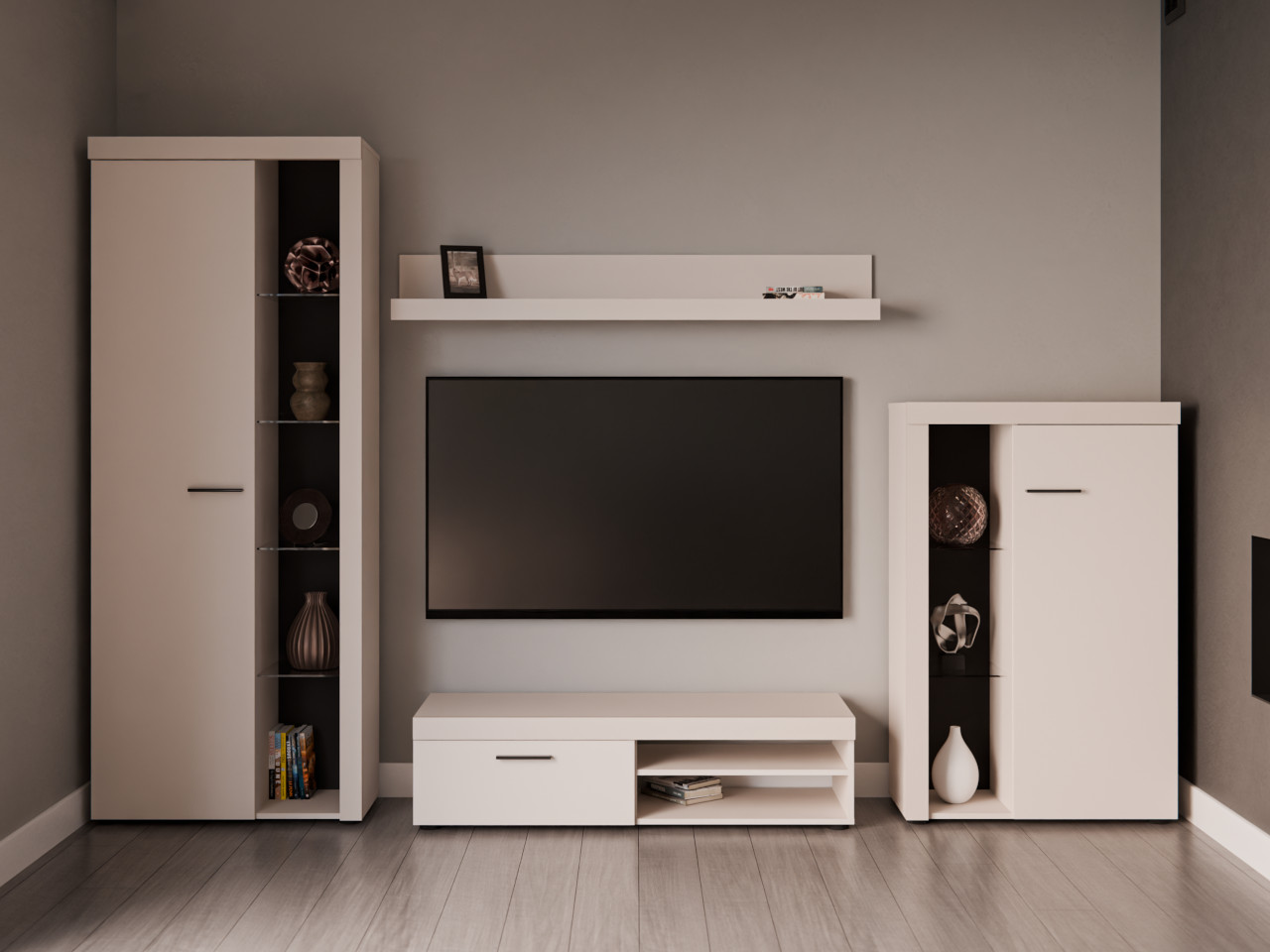 Magas vitrin (75/190/33,8) TV szekrény (120/31,5/40,3) Fali polc (140/20,5/19,5) Alacsony vitrin (75/117/33,8) |